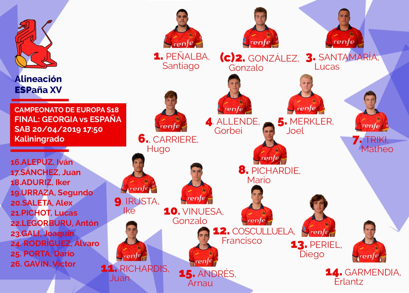 Además, los Leones contarán con el apoyo incondicional de muchos de sus familiares, que están siendo casi como un jugador más en el Rugby Europe U18 Championship de Kaliningrado, tal y como se aprecia en las propias retransmisiones. Sumado al aliento que mandamos todos los que les seguimos desde España, Puerta y los suyos están listos para seguir escribiendo una historia muy ilusionante. Estos jugadores tienen muy buena pinta.