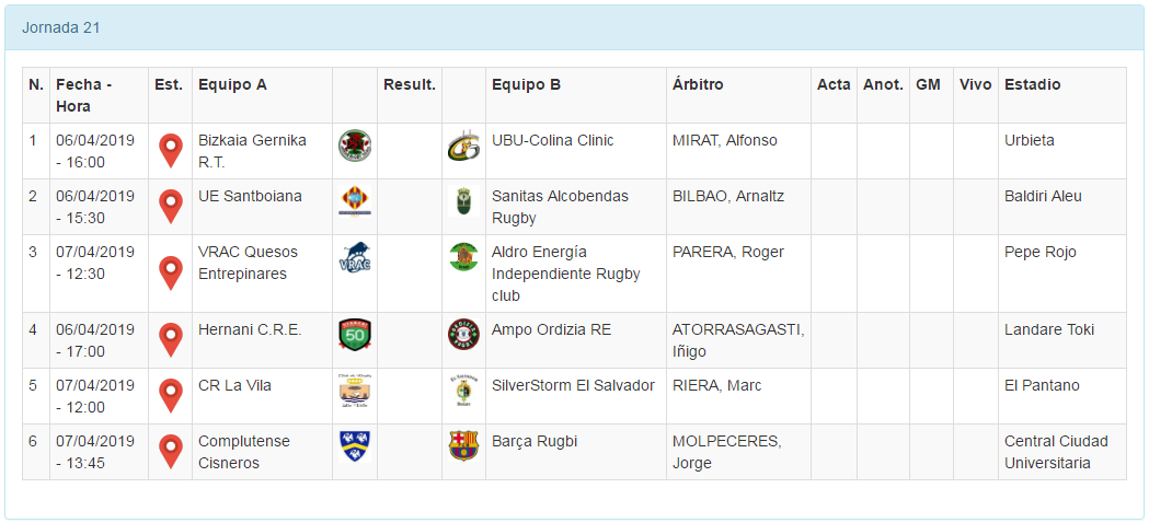 Posteriormente, también el sábado, a las 17:00h, Hernani C.R.E. opta a seguir alejándose del descenso en el derbi guipuzcoano ante Ordizia. Con varios equipos pisándoles los talones, los de Patrick Polidori quieren buscarle las cosquillas a un muy buen equipo que sin embargo ya no se juega nada a nivel clasificatorio. El cuadro visitante, a pesar de estar en una situación más cómoda, no sabe especular y espera sumar una nueva victoria para llegar en plena forma a la fase final por el título. Este partido puede verse en directo por Marca.com.