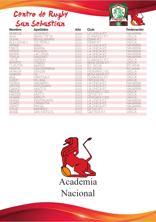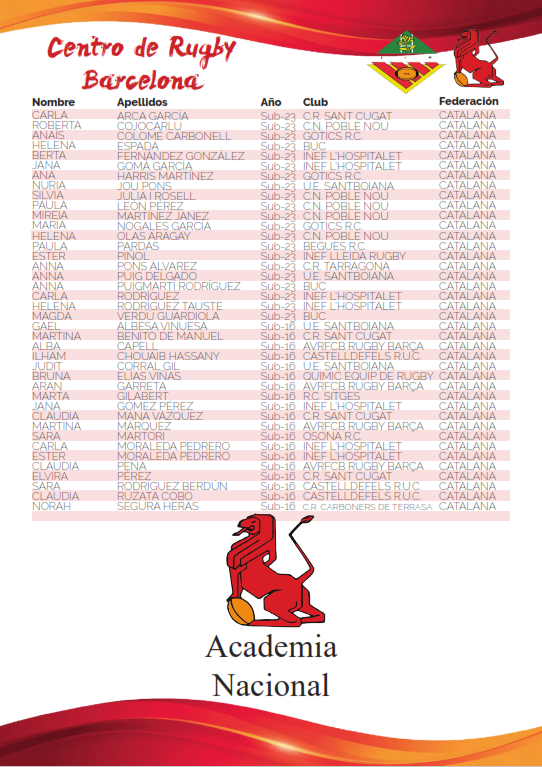 PLANTILLAS DE LOS CENTROS DE RUGBY FEMENINOS