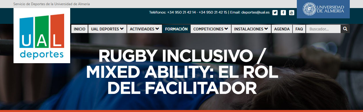 Durante los días 23 y 24 de marzo de 2019, la Federación Andaluza de Rugby, en colaboración con la UAL (Universidad de Almería), ofreció el curso intensivo "Rugby Inclusivo - Mixed Ability: el rol del facilitador".