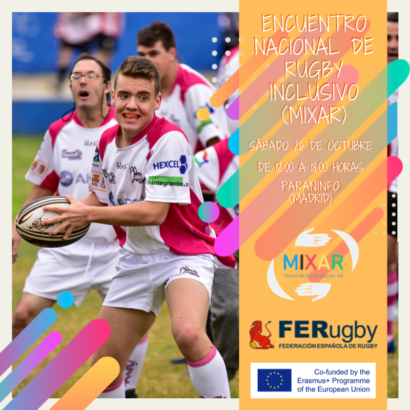 El próximo sábado 26 de octubre tiene lugar en los campos de Paraninfo de la UCM (Madrid) el I Encuentro Nacional de Rugby Inclusivo MIXAR, organizado por la Federación Española de Rugby (FER) dentro del programa Mixed Ability Rugby for All, impulsado por la Unión Europea. Los partidos se jugarán entre las 12:00h y las 18:00h y medirán a los equipos inclusivos de algunos de los clubes que llevan un tiempo apostando por esta modalidad y que han aceptado la invitación de la FER.