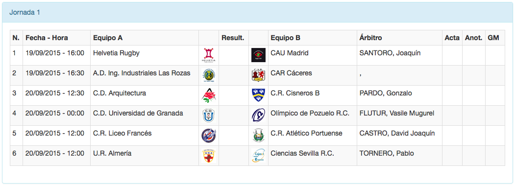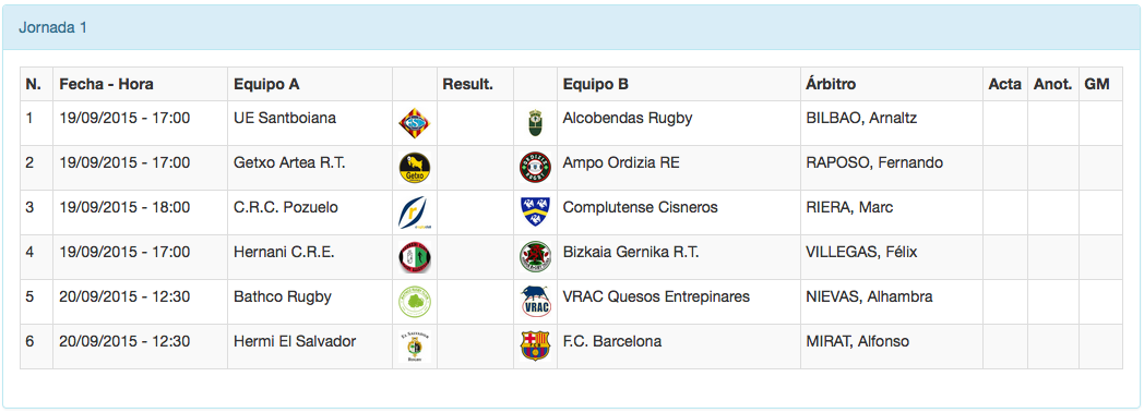 Comienza la Liga de División de Honor 2015-2016 y menuda manera de empezar, nada menos que con 3 derbis autonómicos que se disputarán el sábado: Getxo Artea recibirá a Ampo Ordizia en Fadura con ganas de comenzar con buen pie, Hernani CRE intentará doblegar en Landare Toki a un muy reforzado Bizkaia Gernika y CRC Pozuelo se enfrentará al Complutense Cisneros en el Valle de las Cañas. También el sábado comenzará la temporada el recién ascendido Alcobendas Rugby que viajará hasta el Baldiri Aleu para enfrentarse al subcampeón de la pasada Liga, UE Santboiana.