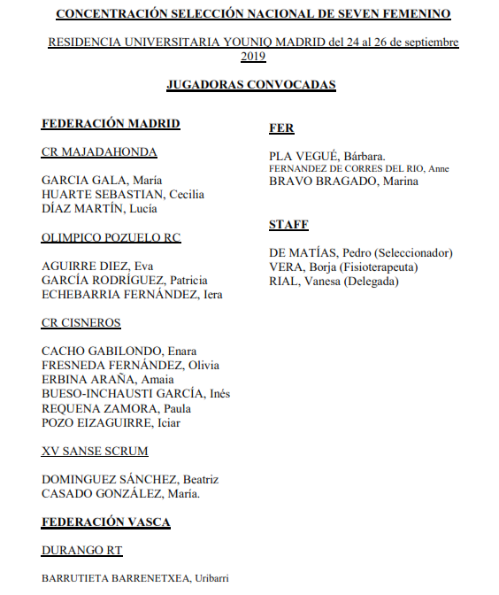 Hay varias novedades en esta concentración de la que saldrá la lista definitiva de 12 o 13 Leonas convocadas para la primera ronda de las HSBC World Rugby Sevens Series, como son la incorporación de jugadoras que estaban en la gira sudafricana con la Selección de XV y la presencia de jóvenes que vienen pisando fuerte, como Cecilia Huarte, Icíar Pozo o Inés Bueso-Inchausti.