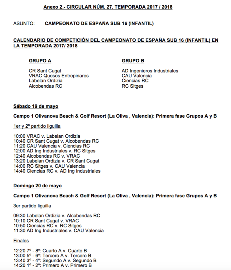 Este fin de semana Oliva acoge la fase final del Campeonato de España de rugby infantil (s16), en el que los ocho mejores clubes dirimen el título nacional de la categoría, además del Torneo Nacional infantil, de inscripción abierta, al que van a concurrir más de 50 clubes de todos los puntos cardinales de la geografía española.