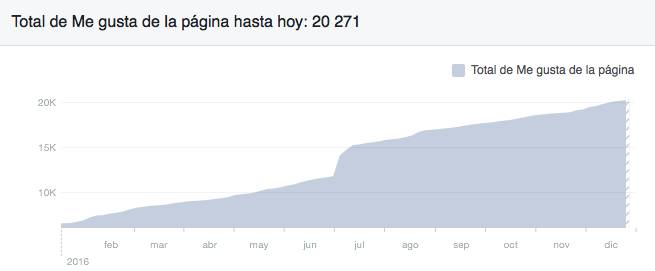 Comenzabamos el año con prácticamente 6500 seguidores en nuestra cuenta y hoy somos más de 20 270 lo que supone un crecimiento en menos de 365 días de más del 300%.