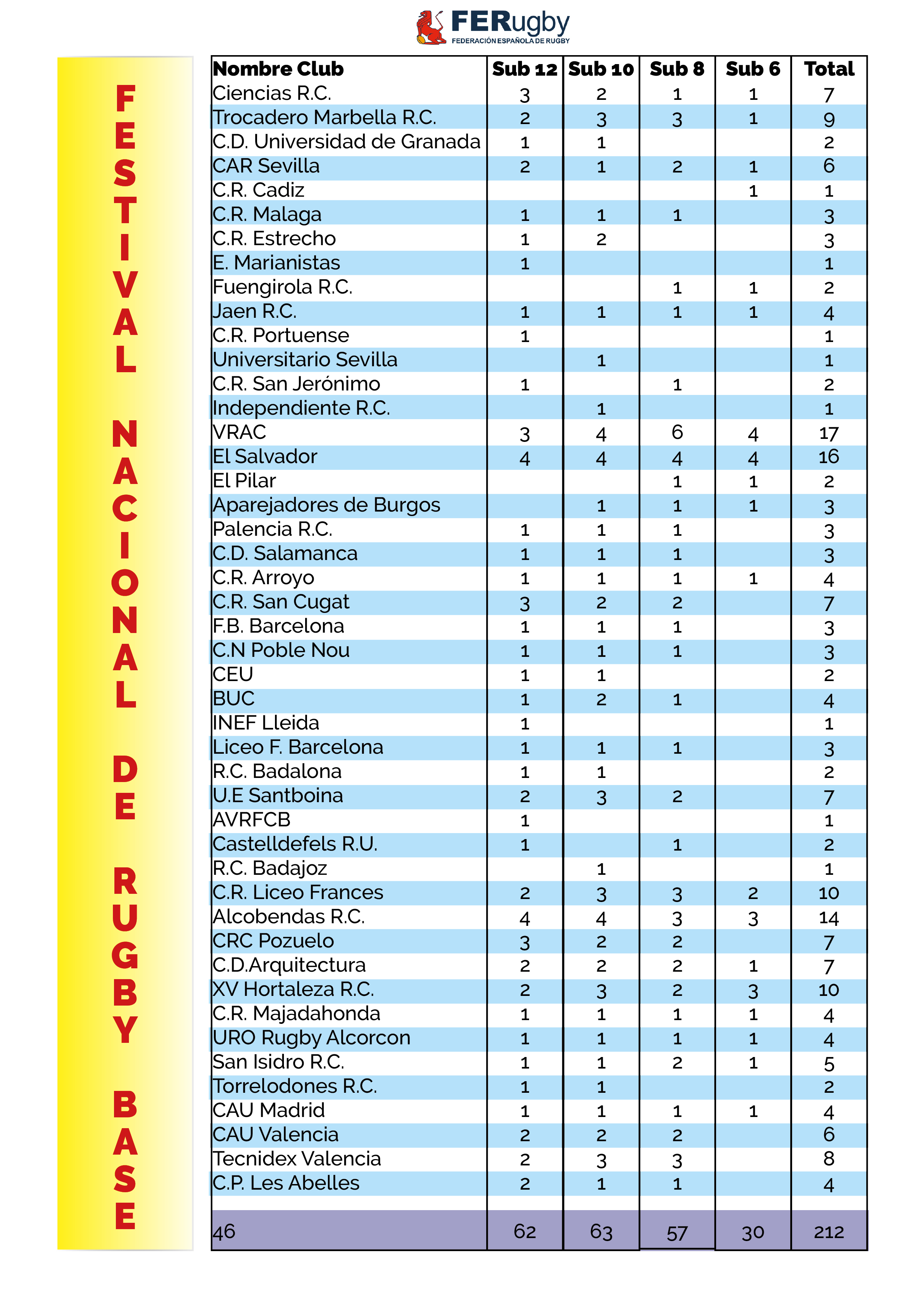 Para ver el calendario y cruces del Festival Nacional de Rugby Base Sub 12 pincha aquí.