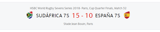 La jornada del domingo nos ha dejado una batalla espectacular entre Sudáfrica y España, que finalmente ha caído del lado de los Bocks por 15-10, en el tiempo extra. Sin duda, los asistentes al Stade Jean Bouin de la capital francesa han podido disfrutar hoy de uno de los partidos más emocionantes del fin de semana y de las últimas series. España le ha plantado cara a una de las selecciones más potentes, que se adelantaba en el marcador con un ensayo un tanto confuso, que ha necesitado de más de un minuto de revisión para ser dado como válido. El partido ha sido muy físico y sin casi imprecisiones por parte de ambos equipos. Los Leones, a diferencia de lo que venía sucediendo en otros partidos contra los rivales más potentes, han tenido claridad en los últimos metros y se han acercado a marca en varias ocasiones. En el último minuto, Manu Sainz-Trápaga ensayaba tras una gran jugada colectiva para poner el 10-10 en el marcador e ir así al tiempo extra. La prolongación ha estado muy igualada, con los dos equipos muy bien plantados, y finalmente se ha decidido por un ensayo de Geduld, un clásico de la competición, en el minuto 19. Conclusiones muy positivas para seguir creciendo.
