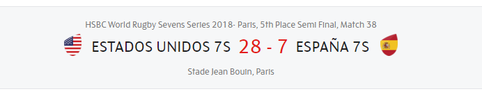 En el último partido, la semifinal por el 5º puesto, Estados Unidos ha aprovechado su velocidad para hacer daño a los nuestros en las alas. España empezó bien, mandando en el juego y permaneciendo casi siempre en campo rival, pero en el minuto 4 Isles consiguió ganar espacio para marcarse una de sus típicas escapadas y anotar el primer ensayo, y desde entonces los nuestros fueron a remolque, facilitando el juego de contener para después explotar que tan bien saben aprovechar los americanos. Buena imagen, aunque la victoria de los Eagles fue justa.