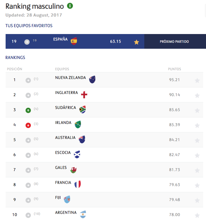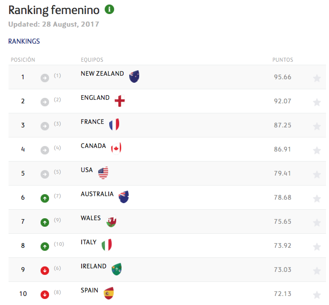 Actualizado el ranking World Rugby
