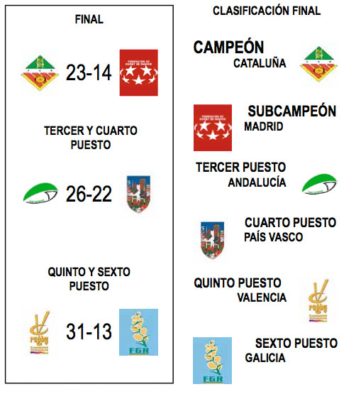 En la lucha por el tercer y cuarto puesto Andalucía ganó en la prorroga a País Vasco en un emocionante partido que acabó 26-22, consiguiendo el tercer puesto y dejando a Euskadi en el cuarto lugar.