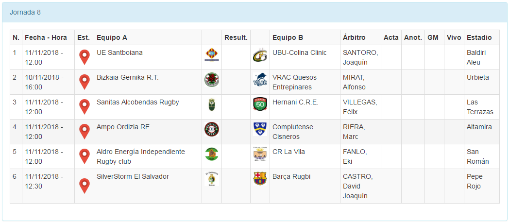Con la jornada 8 de la Liga Heineken, quedará cerrado el primer tercio de la competición, justo antes del parón de dos semanas, donde el XV del León jugará su primer partido de la ventana de otoño. SilverStorm El Salvador y Barça Rugbi quieren inaugurar en Pepe Rojo una buena racha tras sus tropiezos en la J7. Un Gernika R.T. reanimado recibe al VRAC Quesos Entrepinares en el único partido del sábado. Hernani C.R.E., de dulce tras clasificarse para la Copa, visita al líder, Sanitas Alcobendas Rugby. Además, AMPO Ordizia R.E. y C.R. Complutense Cisneros buscan aprovechar posibles tropiezos de sus superiores, y tenemos dos enfrentamientos en la parte media-baja; Aldro Energía Independiente R.C. contra C.R. La Vila, televisado por +TDP (canal online de Teledeporte) y U.E. Santboiana contra UBU-Colina Clinic Aparejadores.