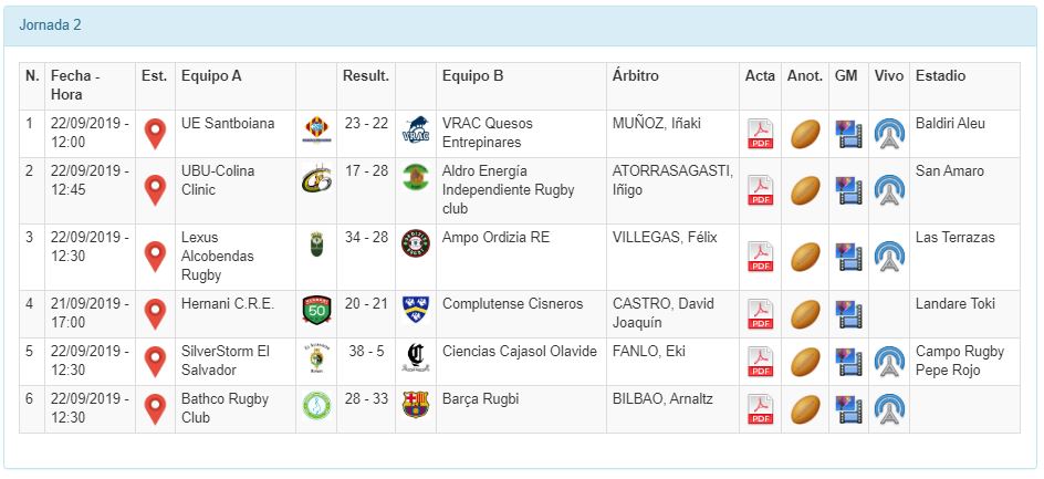 Otro de los equipos que cuenta sus partidos por victorias es la Unio Espostiva Santboiana, que se llevó un triunfo muy trabajado 23-22 ante el vigente campeón liguero VRAC Quesos Entrepinares. Los hombres de Martinena firmaron una muy buena primera parte, siendo dominantes hasta el punto de que no dejaron a los queseros inaugurar el marcador hasta el último suspiro, cuando con el tiempo cumplido formaron un gran maul desde touch en la línea de cinco contraria para rematar con un certero pick and go y marcharse 13-5 abajo en el marcador. La reacción de los vallisoletanos llegó en la segunda mitad, pero el coraje y la garra demostrada por los locales les vale un merecido triunfo que sin duda es un estreno perfecto sobre el nuevo césped del Baldiri Aleu.