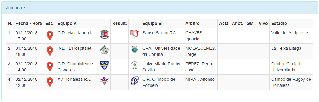 En el Valle del Arcipresete, Majadahonda y Sanse Scrum darán el pistoletazo de salida el sábado a las 17:00h, en lo que es sin duda uno de los duelos clásicos de la competición. Tras vencer en sus visitas a INEF y Olímpico, las locales llegan pletóricas y con ganas de más. No obstante, y aunque Sanse no acumula buenos resultados en las últimas semanas, su juego tan físico e intenso puede llevar el partido por unos caminos que a veces se les atraganta a Majadahonda. Segundas y cuartas están a solo 5 puntos de diferencia y todo hace indicar que será un gran partido.
