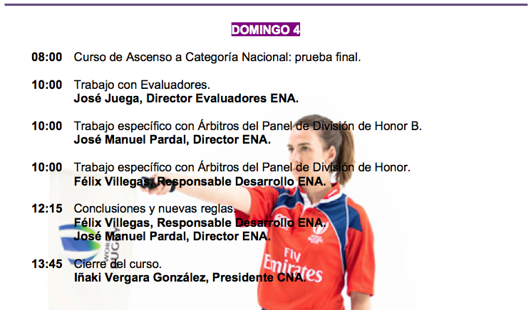 Éste fin de semana se va a celebrar en Jaca la conferencia anual de inicio de temporada del Comité Nacional de Árbitros donde nuestros colegiados prepararán, desde el viernes 2 hasta el domingo 4 al medio día, la próxima temporada. A lo largo de estos tres días de conferencia los árbitros nacionales repasarán los puntos más conflictivos del reglamento, revisarán las nuevas directrices y realizarán diversas pruebas físicas para encarar la temporada que está a punto de comenzar.