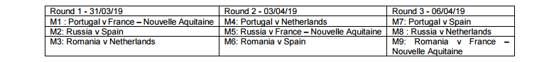 Las tres jornadas han quedado ya establecidas por sorteo, deparando para los nuestros choques ante Rusia, Rumanía y Portugal. Sin duda, los lusos son uno de los rivales a tener muy en cuenta, ya que son los actuales campeones y además juegan en casa, puesto que el torneo se celebra íntegramente en la ciudad de Coímbra. Un combinado regional francés (France-Nouvelle Aquitaine) y Países Bajos completan el cuadro.