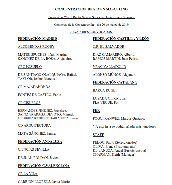 Con las Series Mundiales de Asia a la vuelta de la esquina, la Selección masculina de Seven vuelve a concentrarse este miércoles en Madrid. El seleccionador llama a filas a 17 Leones, pudiendo ampliarse la lista en los próximos días, de cara a esta preparación, donde la intensidad va a ser máxima.