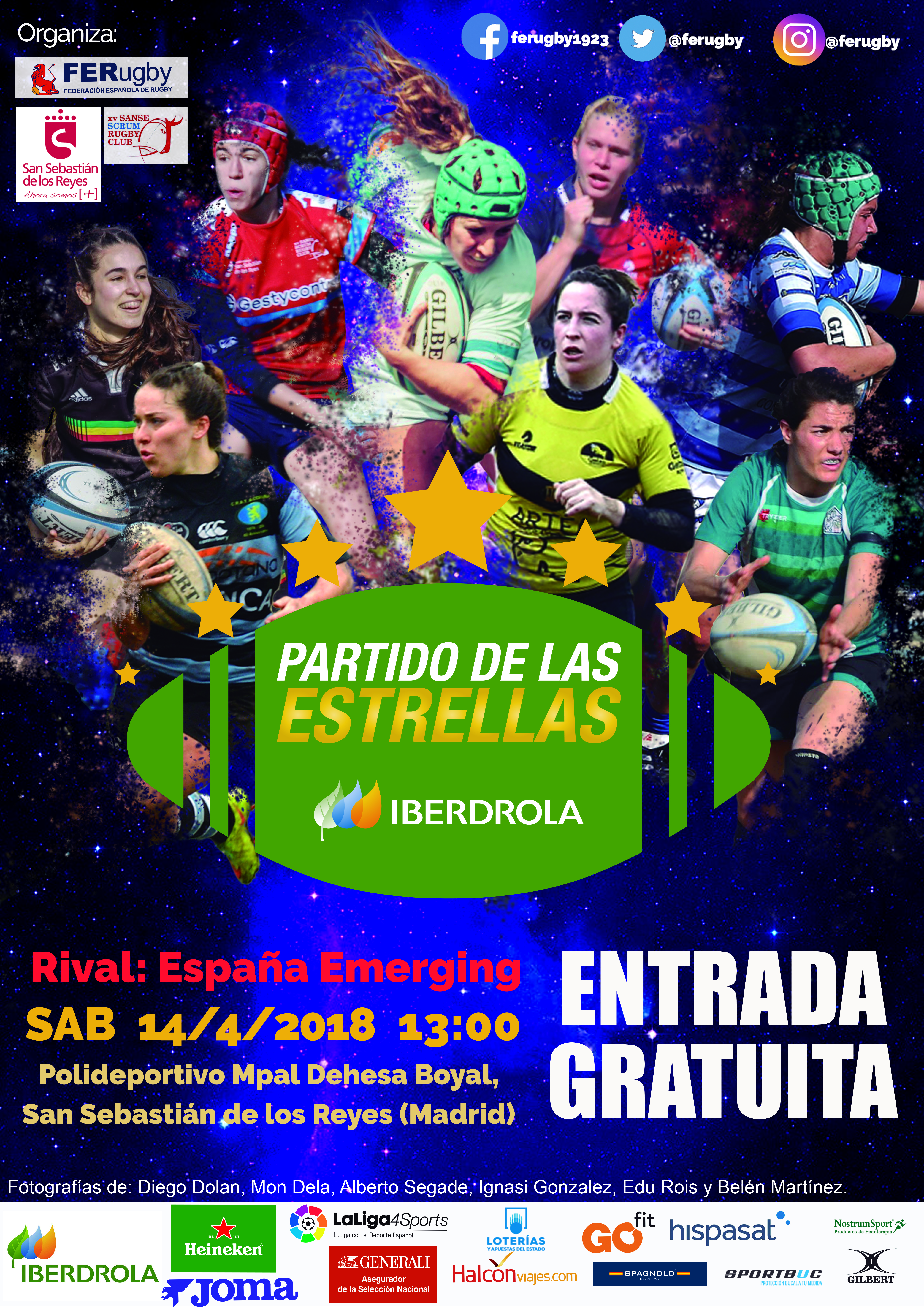 Este sábado día 14 de abril a las 13:00 en el Polideportivo Municipal Dehesa Boyal va a celebrarse el Partido de las Estrellas Iberdrola, en el que un combinado con las estrellas de la Liga Iberdrola de Rugby y la Selección Española Emerging se verán las caras. El Seleccionador Nacional, José Antonio Barrio, ha sido el encargado de confeccionar ambas listas, pero en el caso del Combinado de Estrellas Iberdrola los aficionados puedieron elegir a sus favoritas entre una lista de 45 candidatas en una votación en la web de Marca.com, en la que han participado más de 5000 personas para formar nuestros dream team personal.