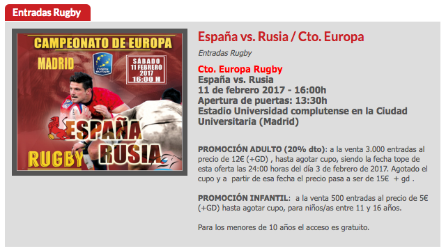 - Federacion Española de Rugby (c/. Ferraz, nº 16. 4º Dcha.) De 09:00 a 17:00 horas.