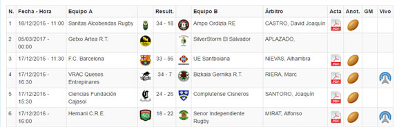 El domingo se ha celabrado el partido restante, que ha protagonizado un Alcobendas que llegaba fresco tras una jornada de descanso por el encuentro aplazado contra el Salvador. Los de Tiki Inchausti partían con 6 puntos de ventaja ante el Ordizia, pero los de Guipuzcoa llegaron dispuestos a ponerles las cosas muy difíciles a los madrileños y supieron desplegar sobre el césped de Puerta de Hierro un rugby de gran calidad. Sin embargo los de granate supieron sacar petróleo de todos los errores y las imprecisiones del contrario y hacerse con el partido. El luminoso se cerraba con un ensayo sobre la bocina de Ordizia que ponía el definitivo 34-18 y conseguía un resultado más parejo al rugby que pusieron sobre el terreno de juego.El Alcobendas consigue así el importantísimo bonus que le permite seguir a la estela del Vrac con sólo tres puntos menos que el líder.