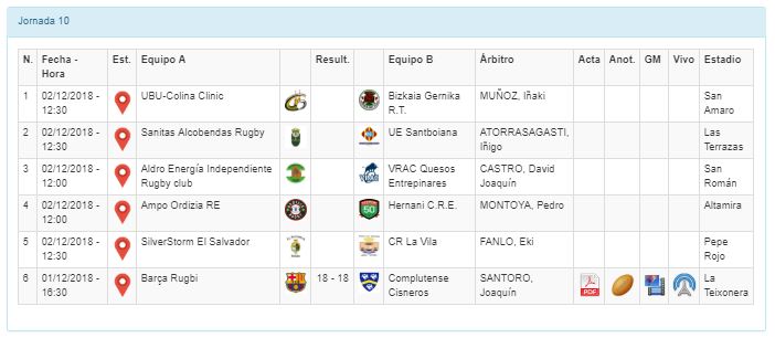 La décima jornada de la Liga Heinkenen se ha puesto en marcha con un partido adelantado al sábado entre Barça Rugby y Cisneros, que se ha saldado un empate a 18, beneficiosa sobre todo para el equipo de la ciudad condal, ya que este resultado le vale para clasificarse como semifinalista de la Copa de SM El Rey por segundo año consecutivo. Para el Complutense Cisneros mala suerte de nuevo, ya que a pesar de que no deja de luchar no consigue su segunda victoria de la temporada. La buena noticia es que suman dos puntos, que les alejan de forma provisional del puesto de descenso directo, en el que estaban ubicados desde la jornada 6.