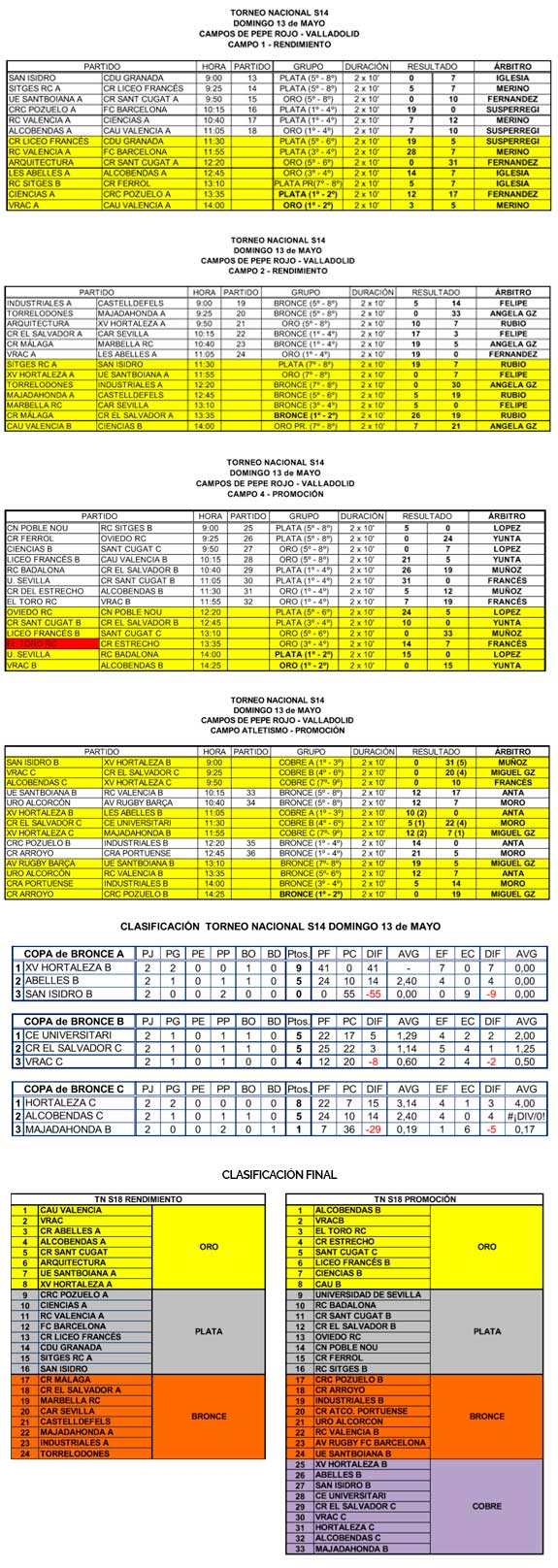 Este fin de semana los campos de Pepe Rojo han acogido a más de 1800 jugadores procedentes de toda España para disputar el Torneo Nacional Sub 14, organizado por el Club de Rugby El Salvador. CAU Valencia ha sido el campeón de la competición tras vencer en la final 3-5 al VRAC en una apretadísima final, pero más allá de los resultados debemos celebrar el éxito de los números de este torneo de categorías inferiores, que vuelve a batir un record de participación con 58 equipos llegados de 36 clubes de toda la geografía española. Una gran fiesta del rugby en la que hemos podido disfrutar de los talentos emergentes del rugby en nuestro país y confirmar el buen trabajo que se viene haciendo desde la cantera en nuestro deporte.