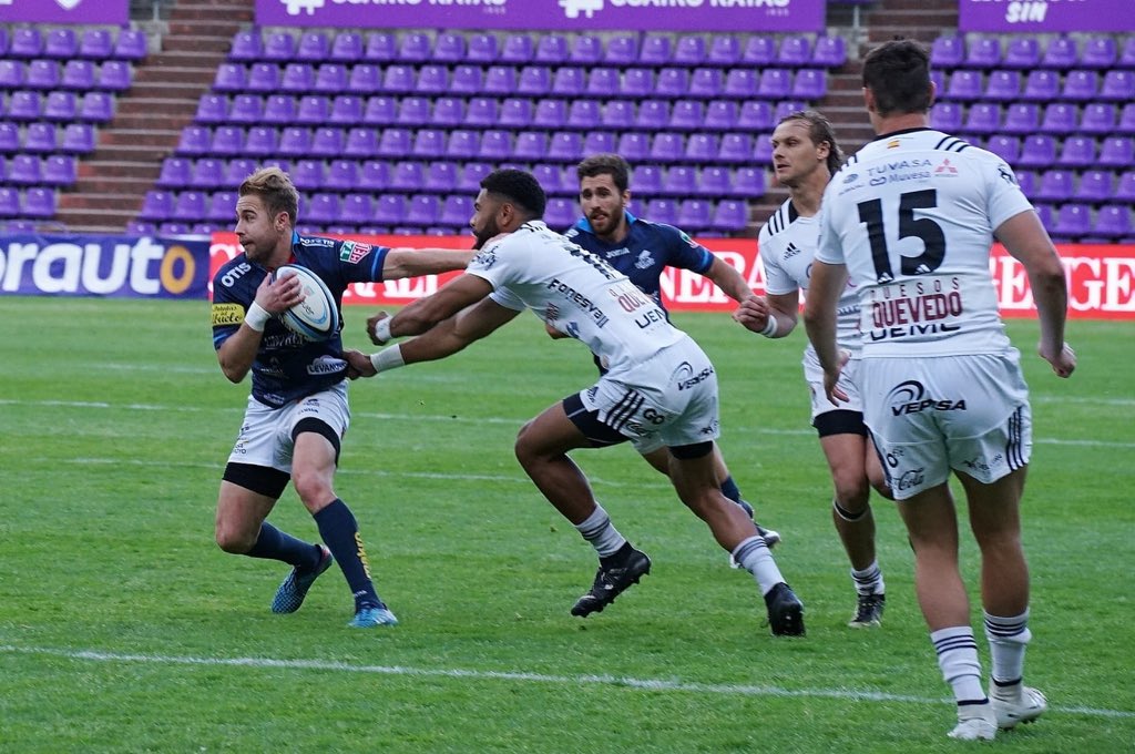 Los derbis vallisoletanos siempre son de alta tensión, pero cuando hay un título en juego las dos escuadras más poderosas de España en este momento cierran filas y los cada detalle se convierte en un momento crucial de juego. Esta vez ambos pateadores, Gareth Griffits por el VRAC Quesos Entrepinares, y Sam Katz del lado del SilverStorm El Salvador, estuvieron perfectos con una efectividad del 100% y cada imprecisión de los hombres que luchaban sobre el césped del Zorrilla la convirtieron en puntos. Aunque los primeros minutos fueron blanquinegros, desde que los queseros pasaron los primeros puntos entre la H no cedieron la iniciativa en el luminoso, y tanto las acometidas de unos como de otros se veían frustradas a pocos metros de las líneas de ensayo contrarias.