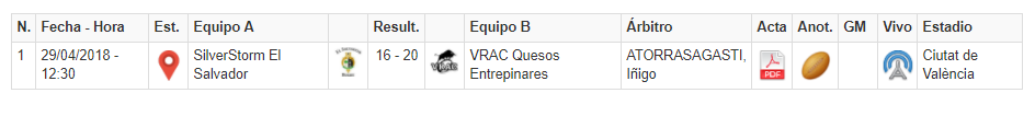 Más de 15.000 espectadores se han dado cita este domingo en el Estadio Ciutat de Valencia para disfrutar de la Final de la Copa de S.M El Rey, que se ha llevado el VRAC Quesos Entrepinares 16-20 tras un partido muy igualado en la que ha sido una exhibición del mejor rugby nacional ante sus vecinos del SilverStorm El Salvador. Los de Diego Merino levantan así la quinta Copa para su club y se perfilan como el equipo dominador del panorama nacional, con sólo una derrota en toda la temporada y la consecución de todos los títulos que han disputado hasta el momento.