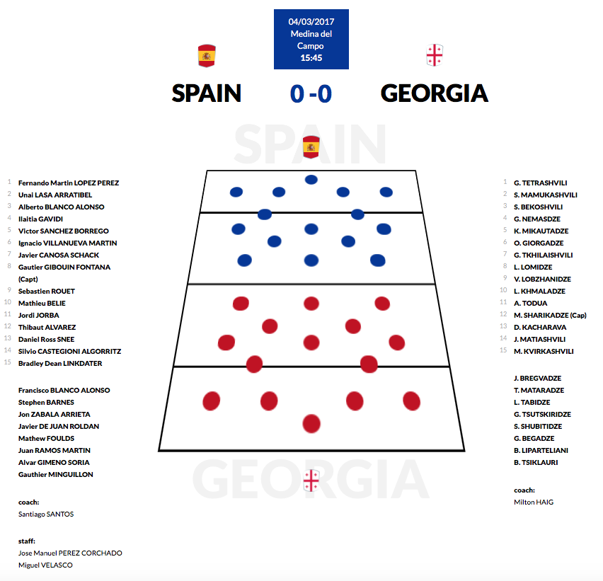 Sobre el campo del Estadio Municipal de Medina del Campo se podrá ver un encuentro lleno de alicientes donde se enfrentarán el primer clasificado del torneo, Georgia, con dos victorias con bonus en su haber y la tercera clasificada, España, con una victoria y una derrota.