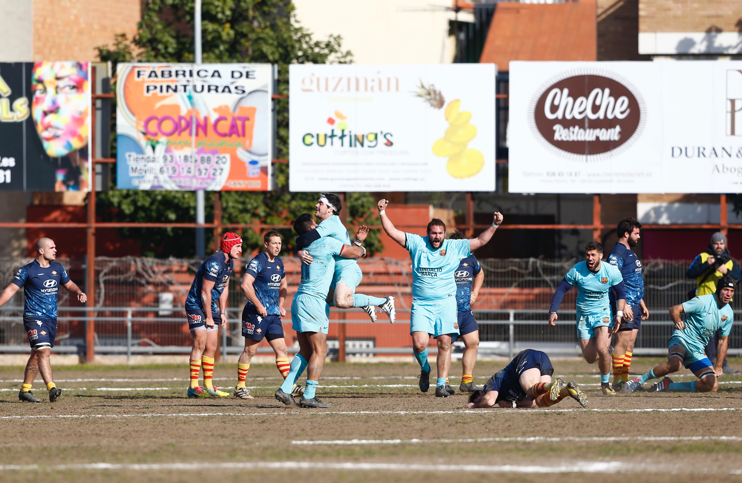 El domingo se abrió la jornada con el derbi catalán entre la UE Santboiana y el Barça. Un partido que no dejó indiferente a nadie. En la primera parte, los locales se pusieron por delante 13-0 tras un ensayo de Jacobus Mason para irse con una buena renta al descanso, pero en la segunda los de la Ciudad Condal, con tres ensayos de Artiom Kovalenko, Franco Velarde y Michael Hogg, ponían un 19 iguales que no se deshizo hasta el minuto final, en el que Guemes con un drop dio una épica victoria al Barça.