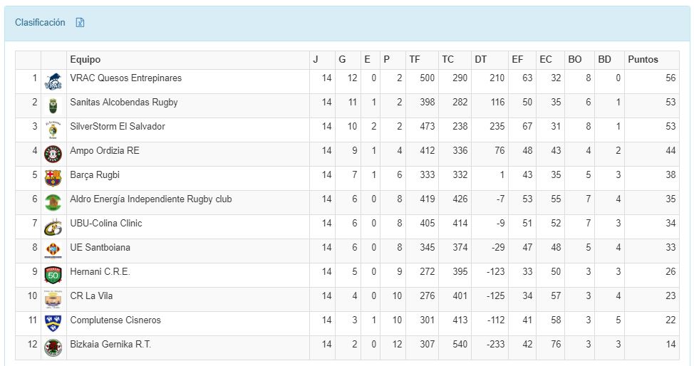 Por último, el UBU Colina Clinic superó 27-31 al Aldro Energía Independiente tras remontar un parcial de 20-3 al descanso que parecía haber dejado sentenciado el encuentro para los de Santander. Lejos de rendirse, los burgaleses, por medio de su zaguero Juandre Kleynhans que marcó un doblete, comenzaron a recortar puntos a los hombres de Tristán Mozimán y remataron la jugada con un ensayo de Pedro González sobre la bocina para ascender hasta el séptimo puesto y acercarles a los puestos de play-off.