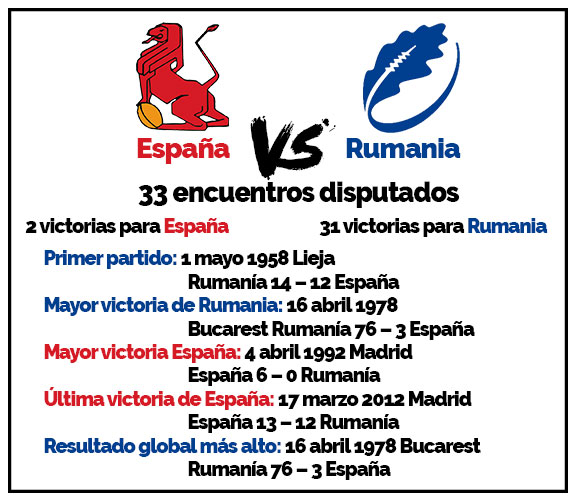 Los mismo pasa con Rumania, con quienes nos hemos enfrentado 33 veces, y nos han ganado en 31 ocasiones. Pero a nuestro favor tenemos que la última vez que las dos selecciones se enfrentaron en Madrid ganaron los Leones. El año pasado ganó el XV del Roble por 29-8.