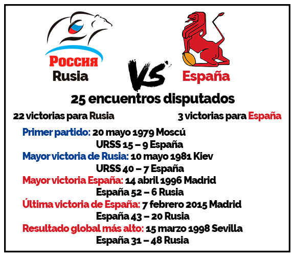 En el histórico de enfrentamientos frente a Rusia el balance es claramente favorable a los Osos, pero nuestra Selección cuenta con la victoria más abultada y con el haber ganado en el último enfrentamiento en Madrid, por 43-20.