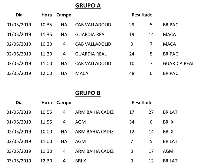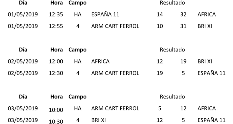 A continuación, los resultados y clasificaciones finales del V Campeonato de Rugby del Ejército de Tierra: