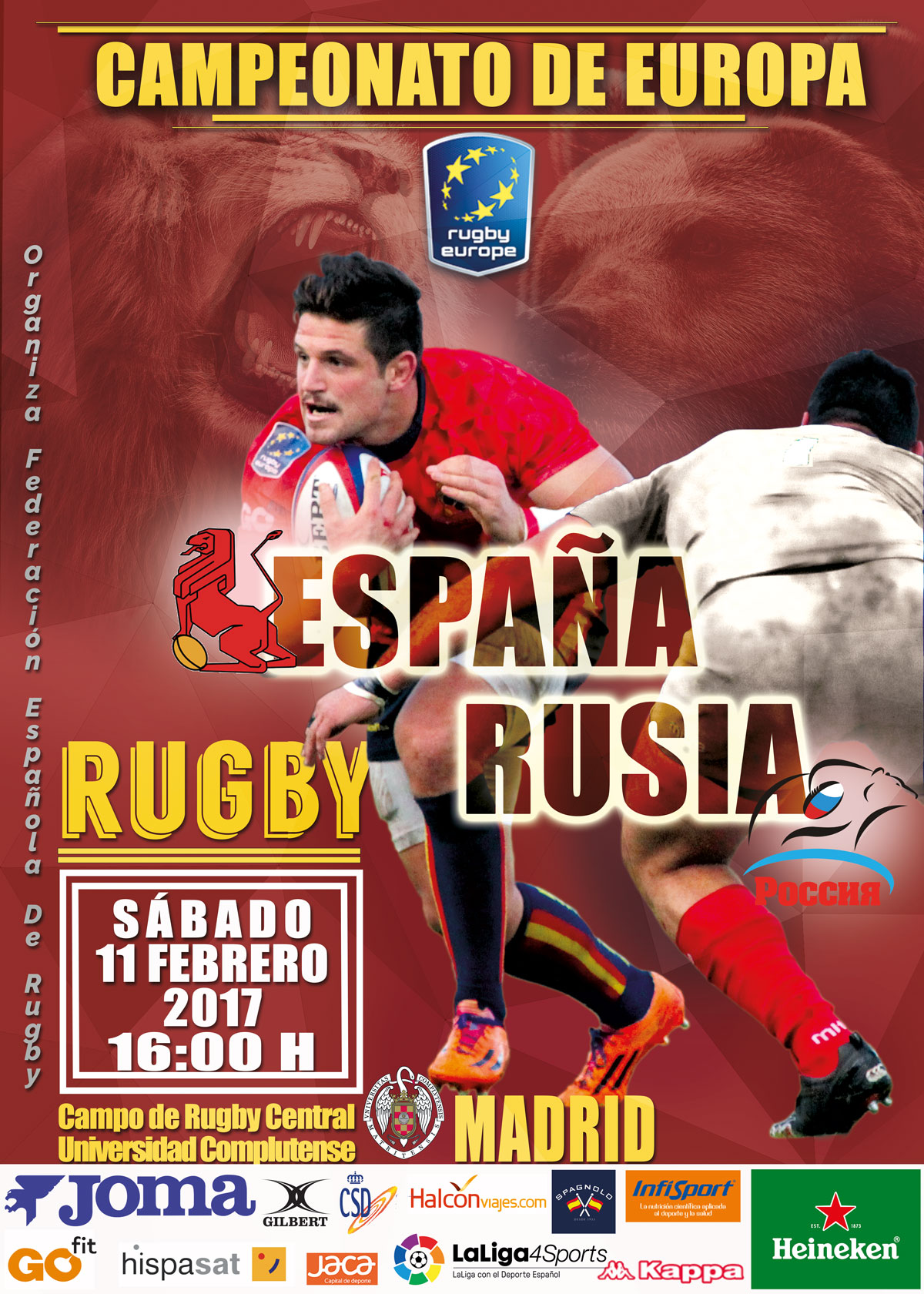 La Federación Española de Rugby pone a la venta la primera remesa de entradas para el debut del XV del León en el Campeonato de Europa, que servirá como proceso de clasificación para la Copa del Mundo de Japón 2019, y será frente a Rusia el 11 de febrero a las 16:00 en el Estadio de la Universidad Complutense de Madrid.