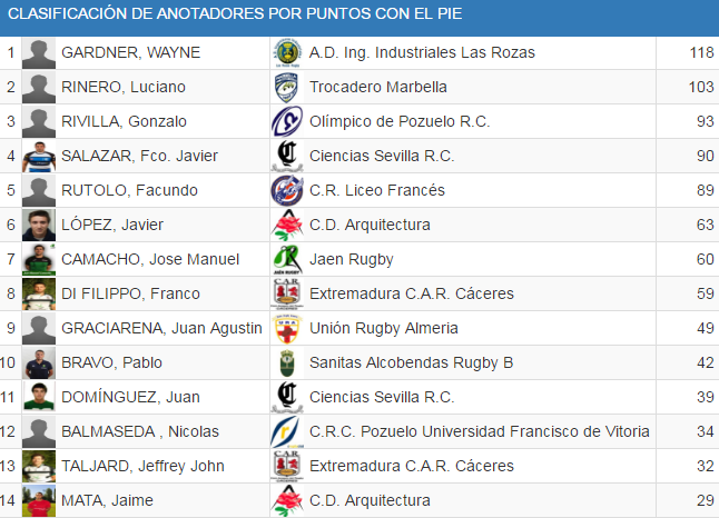 Finalmente, el Grupo C (centro y sur) es quizás el que tiene una parte alta más diferenciada, con Ciencias Cajasol Sevilla y C.R. Liceo Francés protagonizando una carrera muy atractiva por llegar como 1º a las eliminatorias por el ascenso, ya que los andaluces han ganado todos sus partidos y los madrileños solo perdieron el enfrentamiento directo entre ambos de la J6, por 1 punto. El CRC Pozuelo tiene muy encarrilada la 3ª posición y todavía puede optar a más, empezando por el próximo 19 o 20 de enero, cuando reciban al Ciencias. Trocadero Marbella R.C. encabeza el siguiente vagón, empatados a puntos con C.D. Arquitectura. Además, en los últimos puestos hay mucho que decidir, ya que Unión Rugby Almería, C.A.R. Cáceres y Complutense Cisneros Z tienen un triple empate en el 9º, 10º y 11º puesto, y el colista Sanitas Alcobendas Rugby B está al acecho y no bajan los brazos, ni mucho menos.