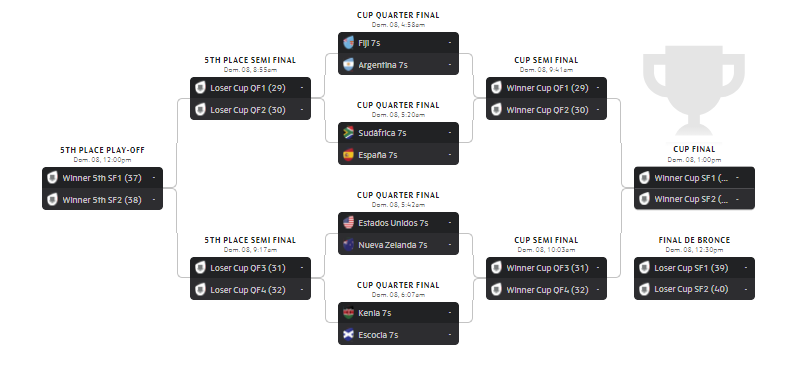 En el partido anterior de la fase de grupos los Leones no pudieron con el poderoso equipo de Kenya, segundo clasificado en el Torneo de Las Vegas, que se llevó el partido con 4 ensayos por un claro 26-0. Los españoles no tuvieron apenas posesión y acusaron los pocos errores que cometieron a la mano que los jugadores Kenyatas no tuvieron problemas para convertir en ensayos. En la segunda parte, a pesar de la tarjeta que vio Pearce al intentar interceptar un pase que terminó en adelantado, los españoles encontraron mejores sensaciones en defensa y los africanos sólo pudieron traspasar su línea de ventaja en una ocasión.