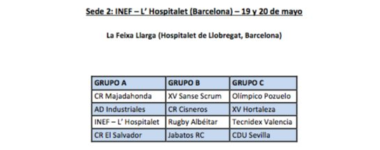 De nuevo, CR Majadahonda, ganador de la primera serie, XV Sanse Scrum y Olímpico de Pozuelo serán los cabezas de serie, a tenor de los resultados producidos en Villajoyosa. Así está la clasificación actualmente: