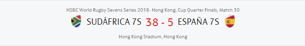 En los cuartos de final de oro (Top 8), España no pudo con los poderosos Springboks y perdió 38-5 en un partido en el que no fue capaz de mantener la posesión y sufrió mucho con cada ataque sudafricano. Los líderes de la tabla global de las Series de esta temporada y campeones en Dubai no perdonaron ninguno de los errores españoles, y sólo concedieron un ensayo a los jugadores de Feijoo, que aprovecharon la primera expulsión por un placaje en el aire para hacer efectiva la superioridad en el ala y anotar de la mano de Pol Pla.
