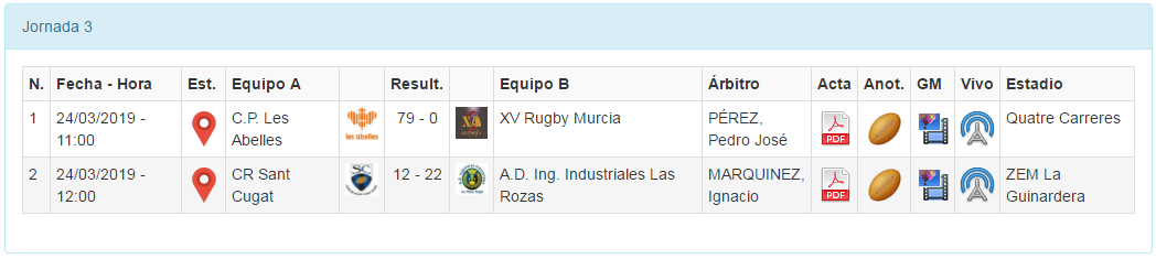 C.R. Sant Cugat e Industriales protagonizaron un choque muy atractivo, en el que las catalanas empezaron mejor, aunque el cuadro visitante consiguió rehacerse y tuvieron su mejor momento en el tramo final, creando mucho peligro en campo rival y aprovechando muy bien su juego abierto en los últimos metros. En lo que respecta a Les Abelles, las valencianas no dieron pie a la sorpresa y vencieron al XV Rugby Murcia, asegurando así su condición de local.