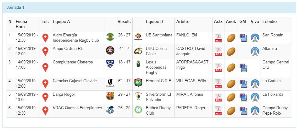 Tensión y resultados igualados en el Aldro Energía Independiente-Santboiana (26-27) y VRAC Quesos Entrepinares ante el debutante Bathco Santander (26-20), además de comienzo contundente del recién ascendido, Ciencias, que ganó 62-17 a Hernani, y de AMPO Ordizia ante el UBU Colina Clinic por 44-7.