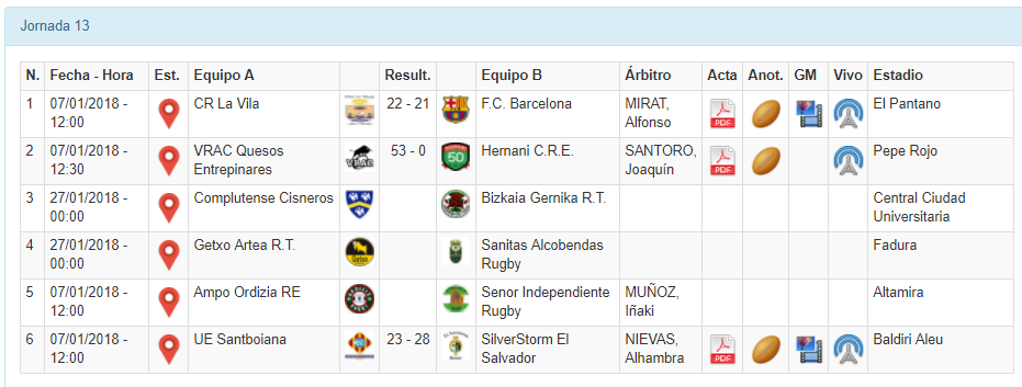 El CR La Vila abría la jornada en El Pantano con mucha necesidad de sumar cuatro puntos en su casillero, y desde el primer minuto salieron a llevarse el partido, lo que se reflejó en el marcador que al descanso marcaba un 12-0 para los locales. Sin embargo en la segunda mitad llegó la reacción de los hombres del FC Barcelona, que lucharon hasta el final y cerraron el luminoso con un ensayo en el último minuto 22-21.