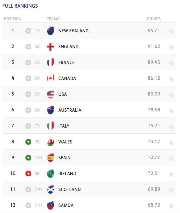 La Selección femenina de rugby XV no para de darnos buenas noticias, y es que tras sus dos triunfos ante Hong Kong 60-5 y Sudáfrica 17-5 en la ventana de noviembre, ascienden al noveno puesto del ranking de World Rugby. Así, las nuestras se ponen por delante de Irlanda, que pierde dos posiciones tras caer 10-19 ante USA, y todavía debe enfrentarse el próximo sábado 24 de noviembre a las potentes rosas inglesas.