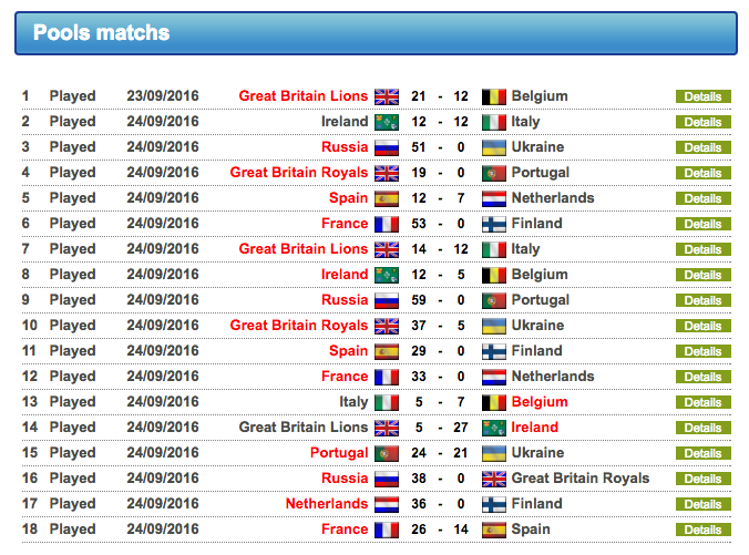 Y por último las Leonas cerraron su participación ante las vigentes campeonas de Europa, Francia, y después de ver como el 7 del gallo se marchaba en los primeros 5 minutos 14 a 0 España empataba la contienda por medio de los ensayos de Amaia Erbina y Olivia Fresneda en el minuto 9. Al final las locales conseguían dos ensayos más, fruto de los errores españoles, y cerraban el encuentro 26-14.