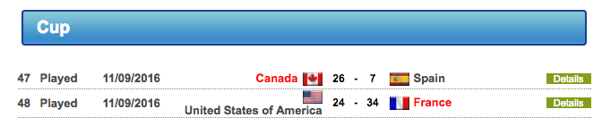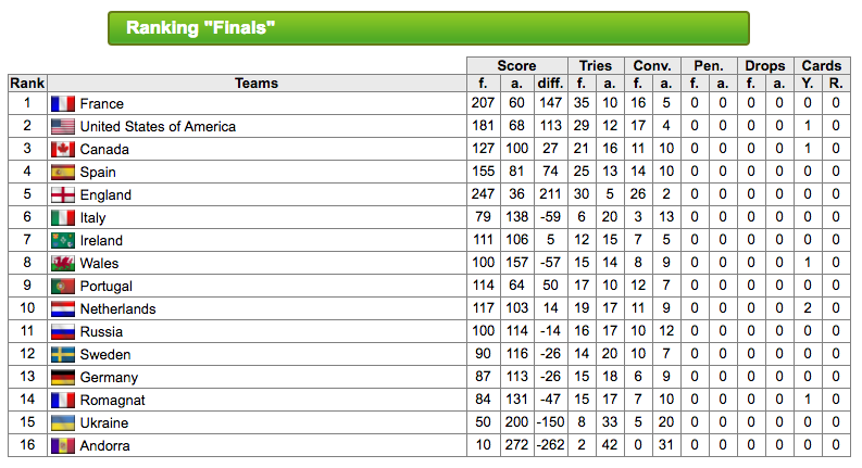 En su último partido en Vichy la Selección se enfrentó con Canadá, que en cuartos había ganado a Inglaterra, vigente campeona de Europa, y en semifinales había puesto contra las cuerdas a Estados Unidos. Después de una primera parte donde Canadá supo marcharse con ventaja, 14-7, la segunda fue enteramente para las canadienses que se impusieron por 26-7.