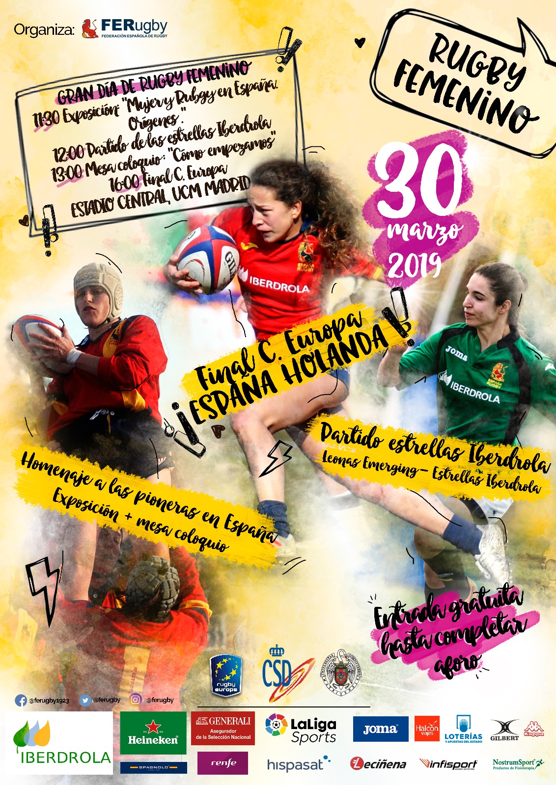 Cabe recordar que Renfe, que también patrocina a las árbitras, no sólo de rugby, sino también de fútbol, baloncesto y balonmano, ofrece billetes con descuento del 50% para viajar a Madrid con motivo de la final del Campeonato de Europa. El objetivo es batir el récord de asistencia a un partido de rugby femenino y estamos seguros de que lo vamos a conseguir. La fiesta empezará por la mañana con el partido entre España Emerging y las Estrellas de la Liga Iberdrola y acabará, esperemos, con las Leonas XV levantando su séptimo título de campeonas de Europa.