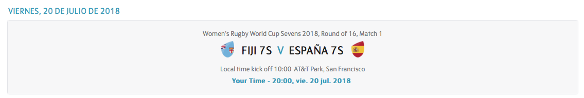 En menos de tres meses la Selección Femenina de Seven va a viajar a San Francisco para disputar del 20 al 22 de julio su tercer Campeonato del Mundo de Rugby 7. Las mujeres a las órdenes de Pedro De Matías inaugurarán el torneo ante Fiji el viernes 20 de julio a las 20:00 hora española, rival habitual en las Series Mundiales y un contrincante de altura en este nuevo formato de competición, en el que cada partido cuenta y una victoria o derrota en este primer cruce te envía de forma directa a la lucha por el oro entre los ocho mejores equipos, o al Challenge entre los restantes.