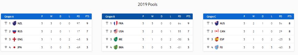 En esta ocasión las españolas quedaron encuadradas en un complicado grupo, y en la fase preliminar se vieron las caras ante Australia y Canadá, contra las que cayeron por 31-5 y 19-14, y Fiji a la que superaron 21-29. Con estos resultandos las Leonas se ganaron una plaza en los QF de oro, en los que se medirán el domingo a las 18:11 contra Francia.