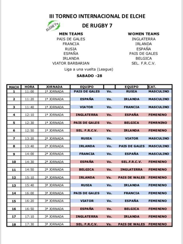 En sólo unas horas arranca el III Torneo Internacional de Rugby 7 ciudad de Elche que se celebrará en el Estadio Martínez Valero y en el que van a participar nuestras dos Selecciones de 7, masculina y femenina, ambas con un claro propósito según sus Seleccionadores: probar las sensaciones del conjunto, afianzar el sistema de juego y mejorar la compenetración entre los jugadores antes de la primera de las Series Mundiales de rugby 7 que se celebrará en Dubai en el mes de diciembre.