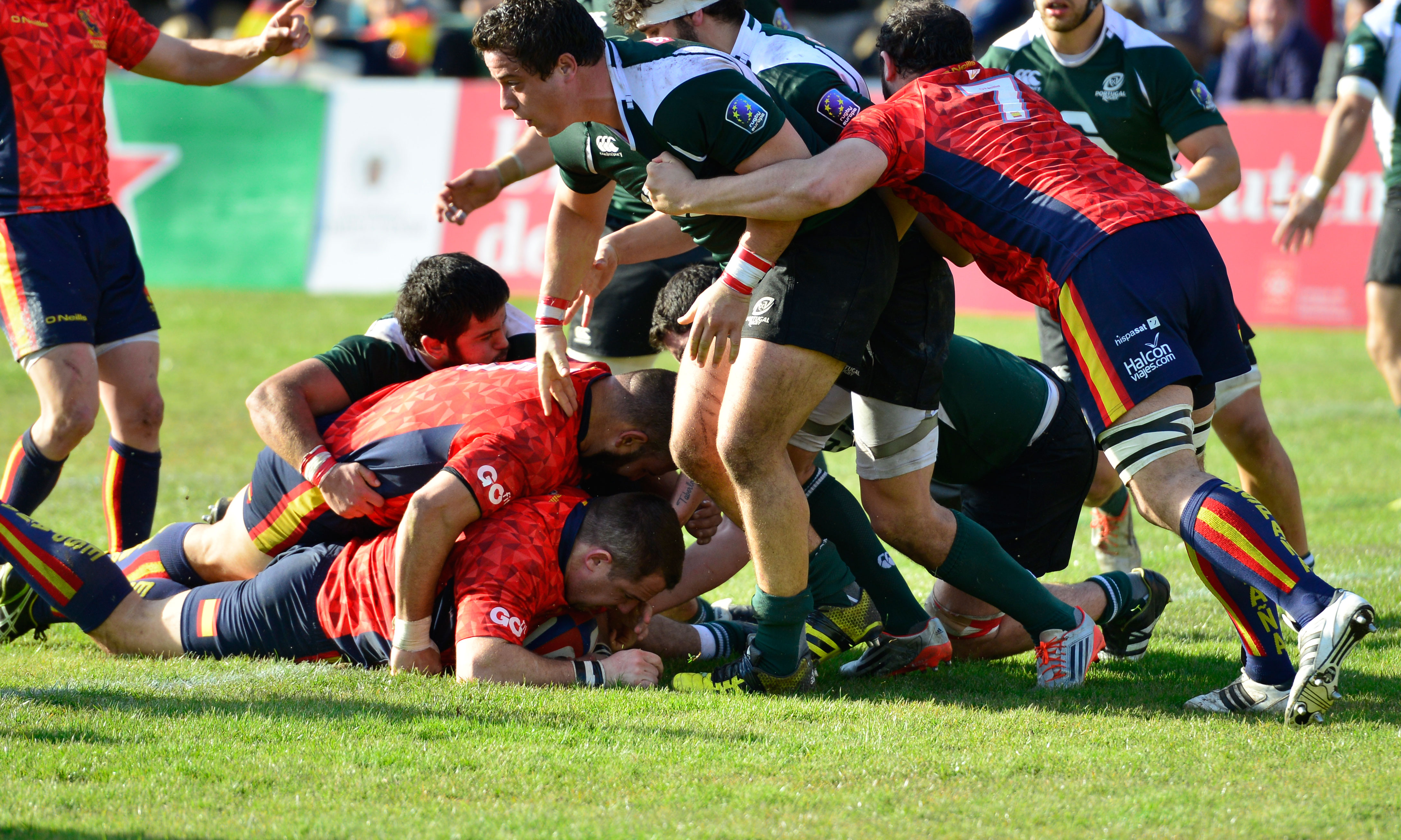 La Selección Española de Rugby XV ha ganado por 39 a 7 a Portugal en Madrid en la penúltima jornada del Campeonato de Europa de Naciones, resultado que les vale para ponerse a un punto de Rusia y seguir luchando por la tercera posición. El resto de la jornada se ha cerrado con la victoria de Rumania ante Alemania por 61-7 y la derrota de los Osos ante Georgia en Sochi por 7-24, por lo que la tercera posición y el descenso se decidirán en la última jornada enfrentándose entre sí los cuatro equipos implicados: Alemania-España y Portugal-Rusia.
