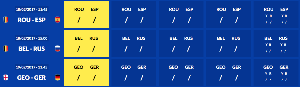 Después de la sorpresa de la primera jornada Alemania pondrá a prueba sus aspiraciones mundialistas ante la vigente campeona Georgia mientras que Bélgica se enfrentará ante Rusia.